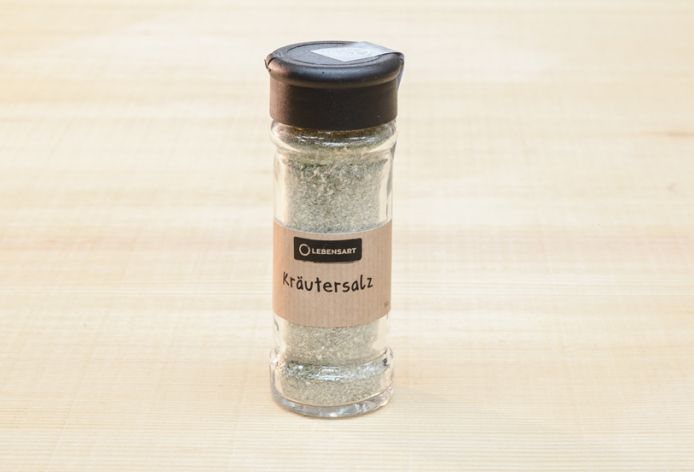 Unser Kräutersalz wird in der Gastroküche Trubschachen der Stiftung Lebensart mit Herzblut hergestellt. Für unser Kräutersalz verwenden wir nur auserlesene Kräuter und Zutaten. Es peppt Fleisch- oder Fischgerichte, aber auch Salatsaucen oder Suppen auf. Auch ganz fein: Kräutersalz auf Frischkäse oder zu gekochten Kartoffeln. Streuglas mit 80 gr. Inhalt.